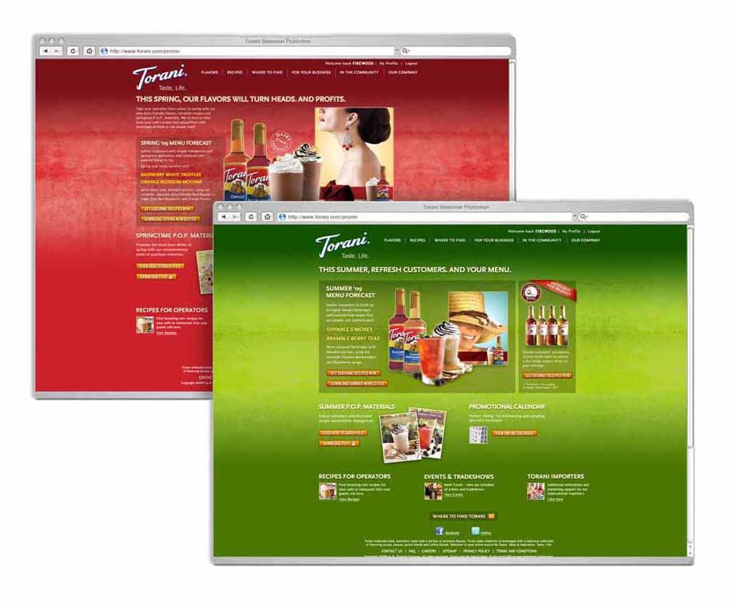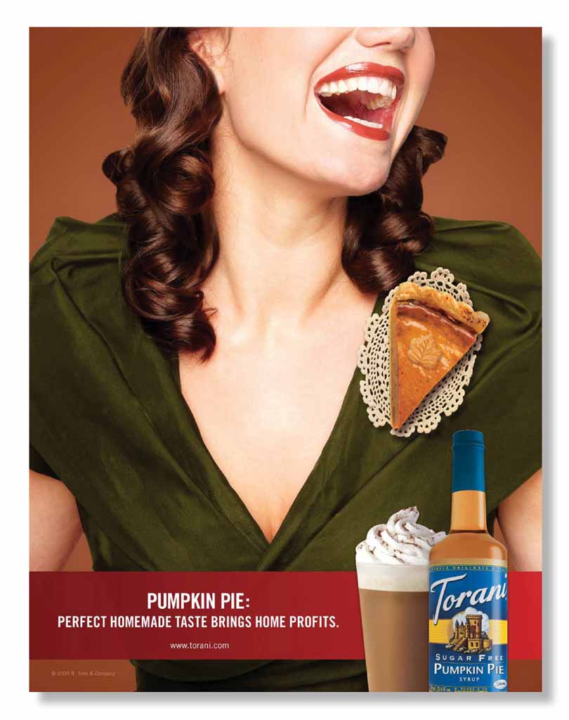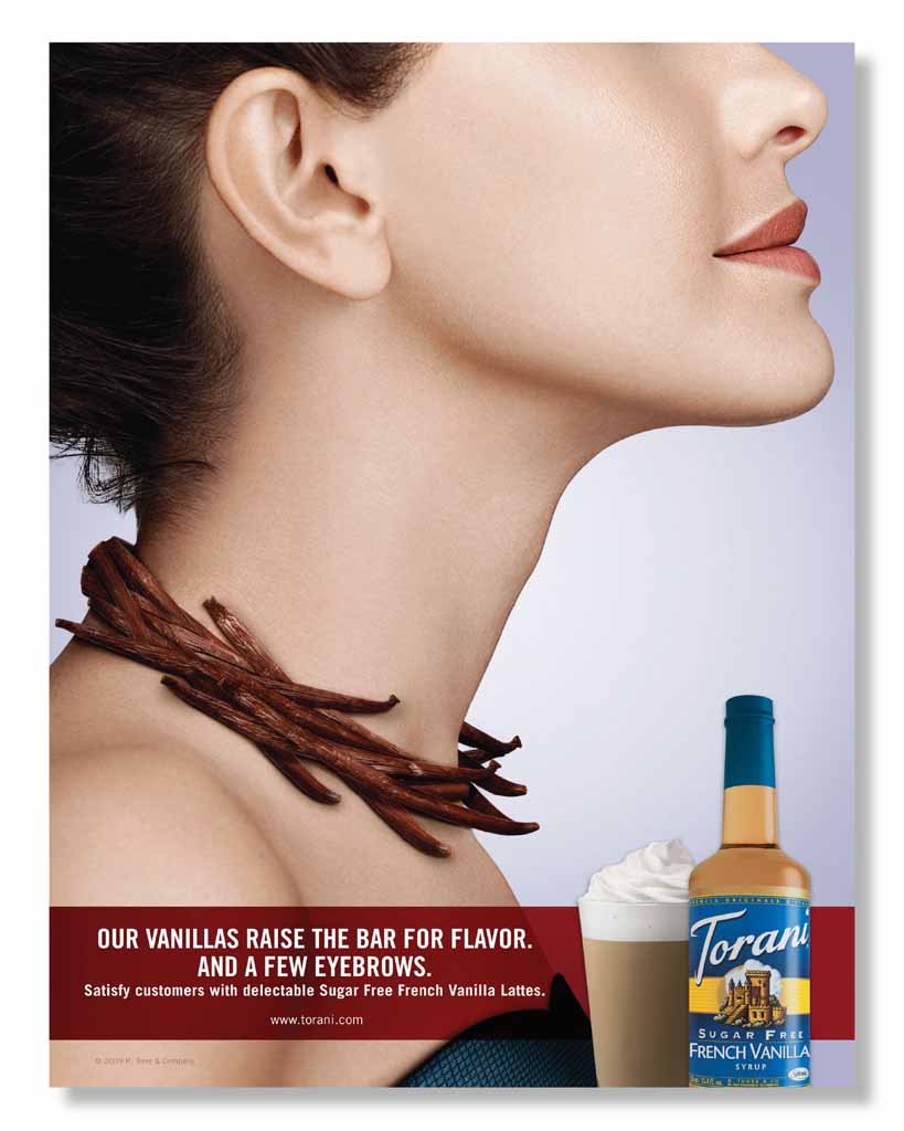 Torani is a San Francisco-based, family-owned company that produces flavoring syrups, sauces, and blended drink bases. Torani can be added to coffee, espresso beverages, cocktails, soda, and other beverages. Firewood was brought in to work on the advertising and marketing collateral aimed at café owners. Once the unquestionable leader in the flavor category, Torani had witnessed the slow and steady rise of competitors. The industry was duking it out in the ditches, with everyone approaching the notion of flavor from a rather pedestrian level. Torani, on the other hand, took the high road and positioned its brand and products as premium quality with a sense of approachable elegance and ‘flavor as fashion’ mindset.